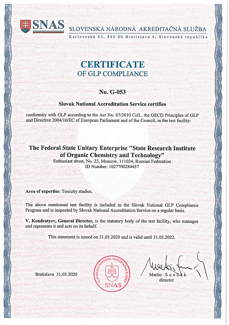 Cвидетельство о международном признании соответствия принципам надлежащей лабораторной практики (GLP) |